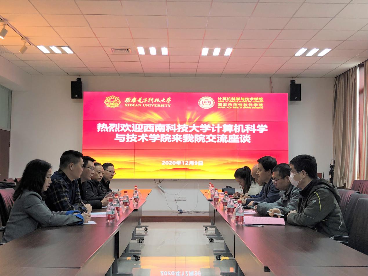 (通讯员 齐富 贠琳红)2020年12月9日上午,西南科技大学best365手机版官方网站副院长赵旭剑一行来我院调研,双方就特色化示范性软件学院建设、本科教育教学和工程专业认证等工作进行座谈交流。学院副院长宋胜利、嵌入式计算技术研究所所长万波、网络工程系主任权义宁、软件工程系副主任褚华、工程专业认证骨干教师付少锋、本科教育教学办公室主任陈龙等参加本次座谈会,会议由副院长宋胜利主持。