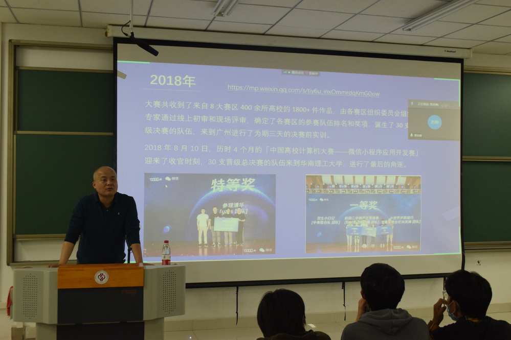 权义宁副教授分析了2018-2020年微信小程序应用开发赛中的获奖作品的功能,重点讲解了部分获奖小程序的亮点,并提出了目前微信小程序发展的热点方向。