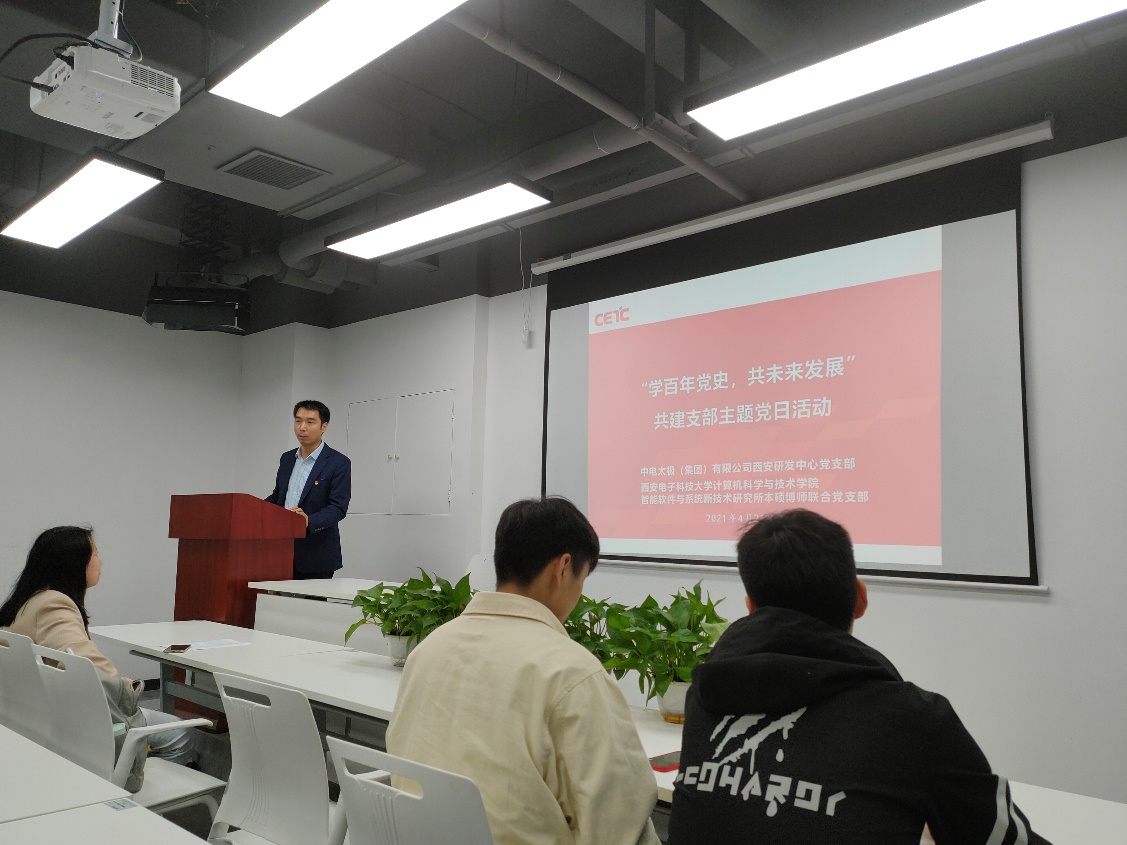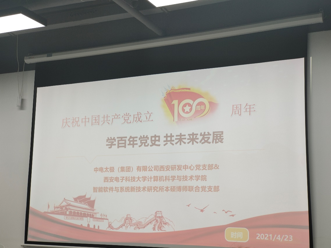 (通讯员 魏彬)为响应习近平总书记“学党史、悟思想、办实事、开新局”的号召,大力发扬红色传统、传承红色基因、赓续共产党人的精神血脉,best365手机版官方网站智能软件与系统新技术研究所本硕博师联合党支部和结对共建党支部——中电太极(集团)有限公司西安研发中心党支部于2021年4月25日联合开展“学百年党史 共未来发展”主题党日活动,用党的奋斗历程和伟大成就鼓舞斗志、明确方向,用党的光荣传统和优良作风坚定信念、凝聚力量,用党的实践创造和历史经验启迪智慧、砥砺品格。活动在中电太极(集团)有限公司西安研发中心开展,由支部书记王璐主持。