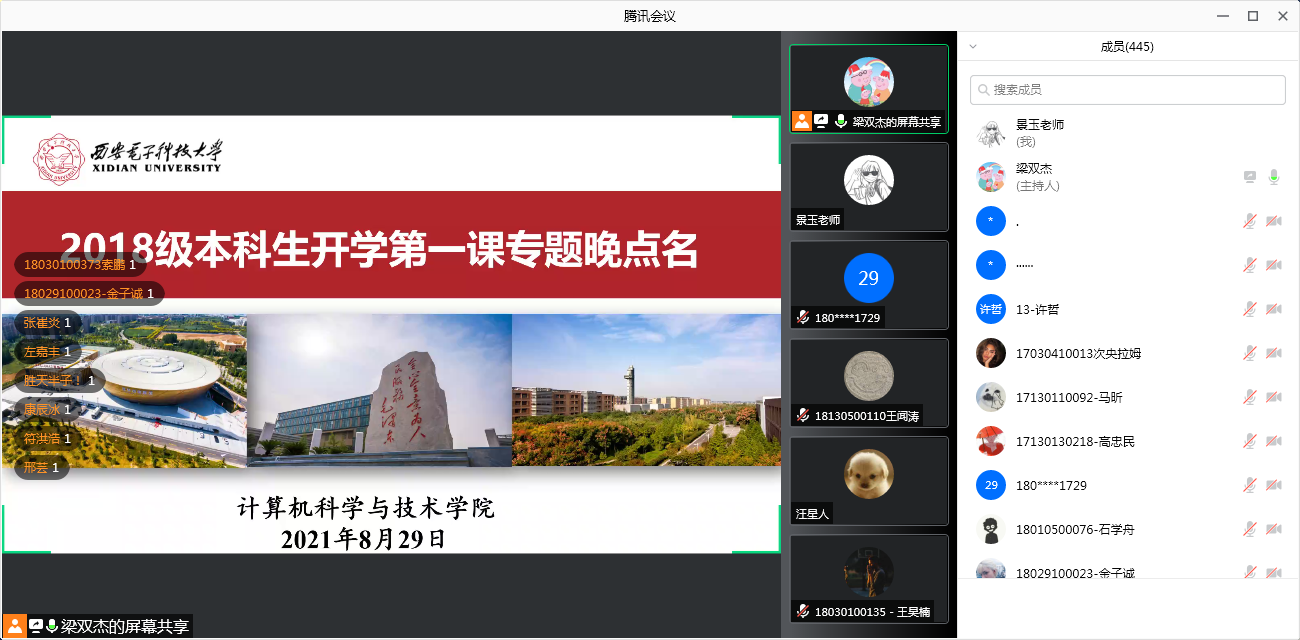 (通讯员 景玉 张力月)2021年8月29日下午,best365手机版官方网站面向2018级本科生开展了线上“开学第一课”专题晚点名活动。三位本科生辅导员围绕疫情防控、安全教育、升学深造、就业择业等多个方面向同学们介绍了本学期的重点工作任务,引导同学们早知道、早准备、早规划。