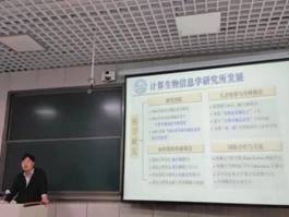 计科院计算生物信息研究所贾松卫老师对其研究所的主要研究方向和研究内容进行了介绍,如:癌症相关模式挖掘、模式发现理论与高效算法等,特别是其团队与哈佛大学医学院Dana-Farber癌症中心合作等在国际上的合作交流情况。