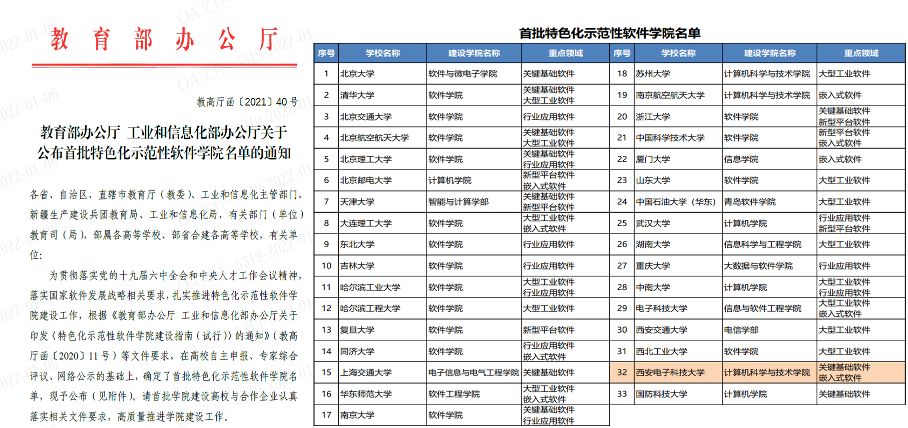 日前,教育部、工业和信息化部联合发文公布了首批特色化示范性软件学院名单,best365手机版官方网站成功入选国家首批33所特色化示范性软件学院建设高校。按照建设要求,best365手机版官方网站(国家示范性软件学院)作为建设学院,围绕关键基础软件和嵌入式软件两个重点领域建设特色化示范性软件学院。这是继我校2001年成功入选首批35所国家示范性软件学院、2011年获得首批软件工程博士/硕士学位授权一级学科后所取得的又一项重要办学成果,集中体现了我校在计算机与软件学科建设、专业建设和人才培养方面的优势。