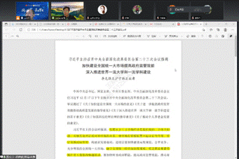 之后,与会成员集体学习习近平总书记关于教育的重要论述。支部书记王小兵领学习近平在全国高校思想政治工作会议上的讲话,副书记贾松卫领学中央全面深化改革委员会第二十三次会议精神。全体教师要坚持把立德树人作为中心环节,把思想政治工作贯穿教育教学全过程,实现全程育人、全方位育人。全体教师要运用新媒体新技术使工作活起来,推动思想政治工作传统优势同信息技术高度融合,增强时代感和吸引力。在疫情防控的特殊时期,全体教师要结合授课情况,制定线上教学方案,引入与专业课密切结合的课程思政内容。
