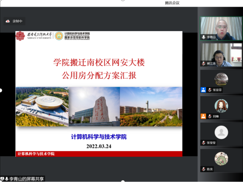 学院党委书记李青山汇报学院南迁网安大楼公用房分配方案