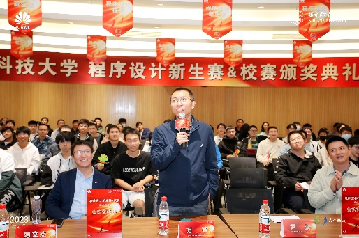 华为技术有限公司赞助了本届程序设计竞赛以及2022程序设计新生赛,2023年5月7日为本届校赛及78名新生赛获奖同学举行了颁奖会,我校创新创业学院副院长尹鹏、best365手机版官方网站副院长暨程序设计竞赛基地主任万波教授出席颁奖会并作了发言,华为光产品线代表刘文杰、雷俭、陈晓磊、陈泽等介绍了算法在光产业业务中的应用,就ICPC人才发展与培养等问题与同学们进行了充分交流。