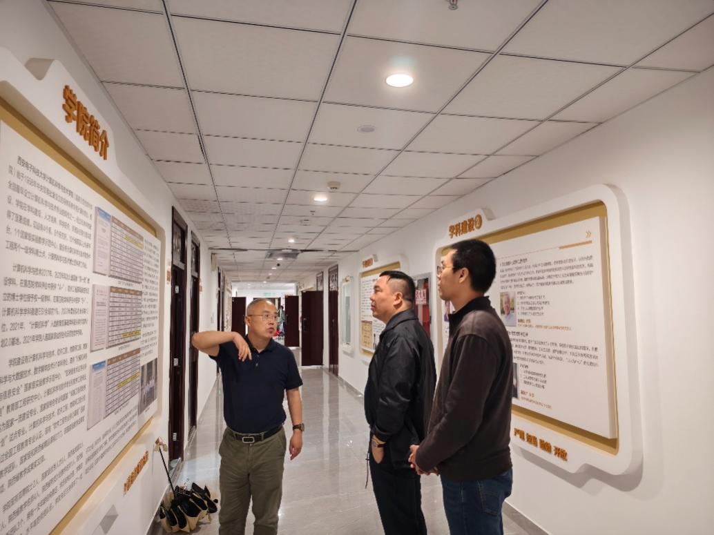 学院党委书记李青山带领厦门大学信息学院一行参观了学院文化建设情况,详细介绍了学院近年来在党建、学科建设、人才培养和科学研究以及校友工作等方面取得的成绩。