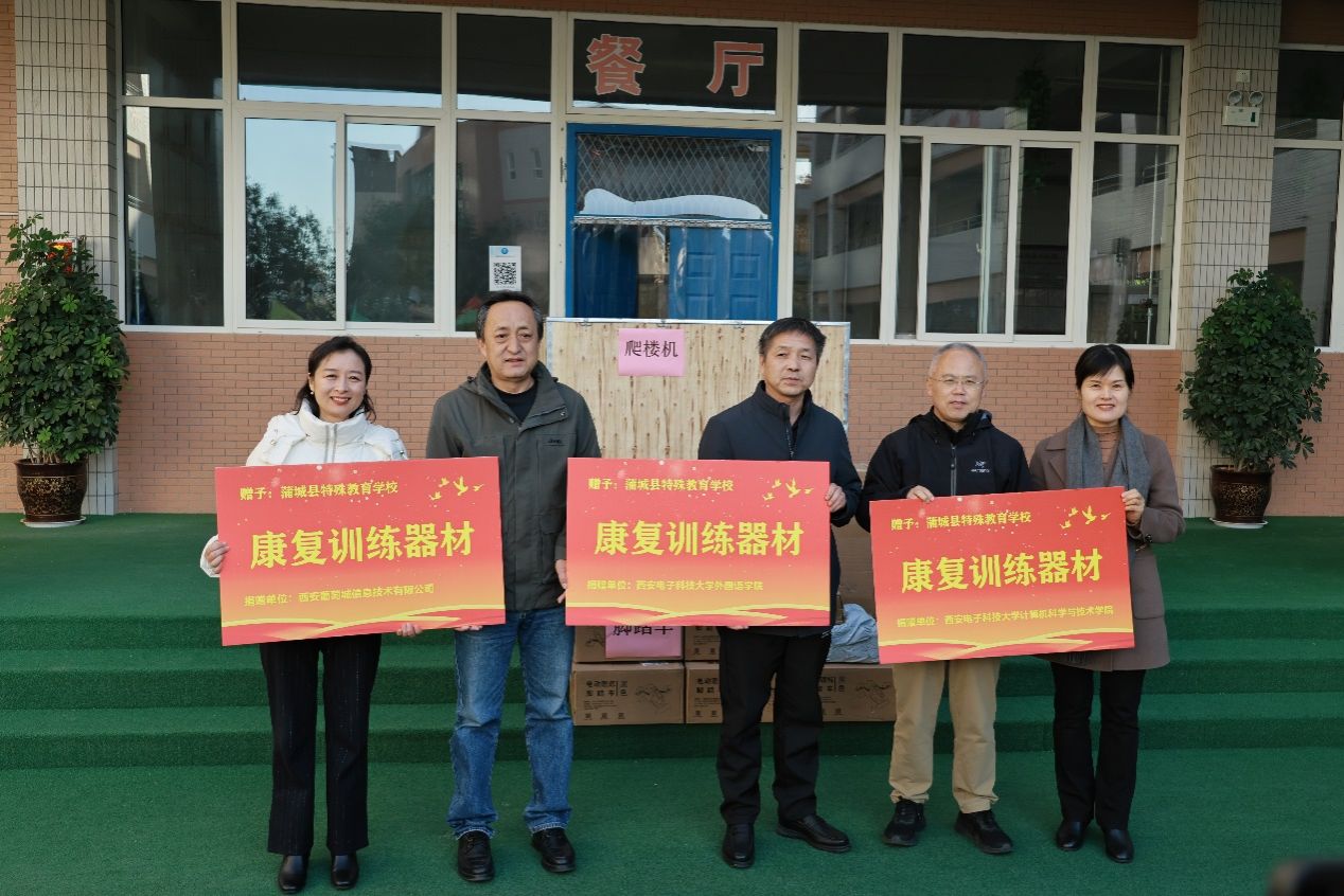 双方举行了物资捐赠仪式。学院前期充分调研蒲城县特殊教育学校需求,计科院积极联络葡萄城公司筹集爱心帮扶资金,外国语学院筹措赞助资金共同为特殊教育学校捐赠了爬楼机、电动康复机等一批急需的康复训练器材,本次捐赠将有效帮助蒲城县特殊教育学校学生开展康复训练。