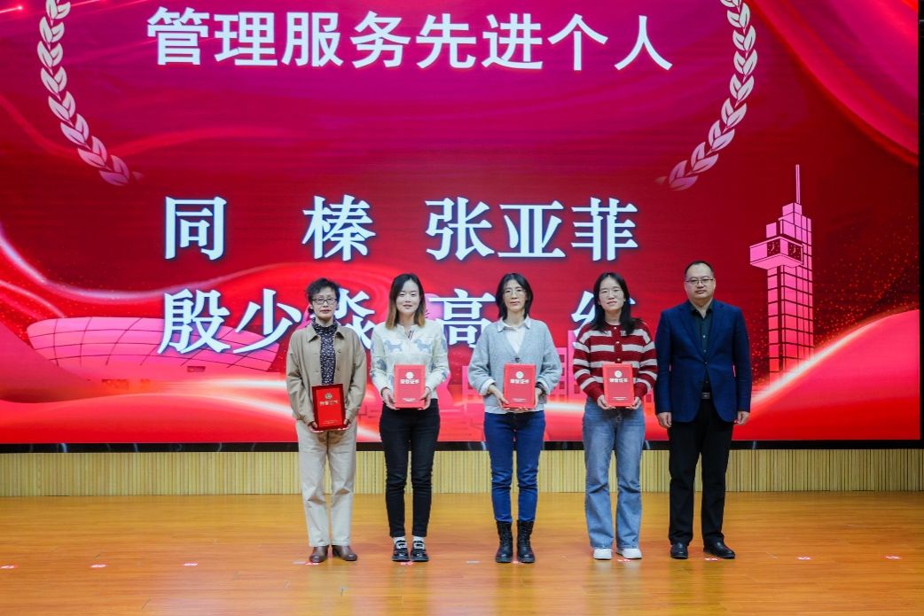 2024年,在全体教职工的共同努力下,学院各项事业取得新成效实现新突破,涌现出了一批在党建、人才培养、科学研究、师资队伍建设、学生工作、管理服务、公共服务等方面的先进个人。组织员王卫东宣读了《best365手机版官方网站关于表彰2024年度先进人员的决定》,领导班子成员分别为获奖代表颁发荣誉证书并合影。学院号召全院教职工以受表彰的先进人员为榜样,爱岗敬业、勤奋工作,为学院发展做出更大贡献。