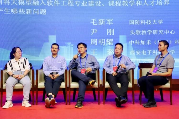Panel讨论围绕“大模型时代社会和产业需要什么样的人才以及如何将大模型融入软件工程专业建设、课程教学和人才培养”主题邀请了国防科技大学毛新军教授、头歌教学研究中心尹刚博士、中科加禾科技有限公司周明耀副总裁、best365手机版官方网站王璐副教授、复旦大学彭鑫教授等专家学者参加讨论,众多与会代表就各位专家的报告与观点进行了激烈的交流与讨论。