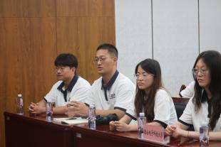 7月8日上午,实践团走进电子科技大学(简称成电),与成电计算机科学与工程学院研究生开展联合主题党日活动,并一同参观电子科技博物馆和相关实验室。在成电行政楼会议室,两校同学围绕“研究生党员先锋模范作用发挥”畅谈深刻感悟,就“党建与科研深度融合”话题展开热烈讨论。随后,在成电计科院硕博士的带领下,实践团参观了计算机科学与工程学院展厅及实验室,成电博士生方凯鹏、刑佑广为同学们演示了人形机器人及机械臂抓取物品的具身智能场景。在博物馆,讲解员引领实践团参观了通信设备、雷达部件、电子元器件、测量仪器、广播电视、计算机软硬件等大量珍贵藏品,重点介绍了成电本科毕设相关展品,以及参与过抗洪、地震救灾工作的激光通信设备和无人机藏品。沿着科技变革脉络,同学们领略了成电人勇于探索、敢于创新、艰苦奋斗的科学精神。