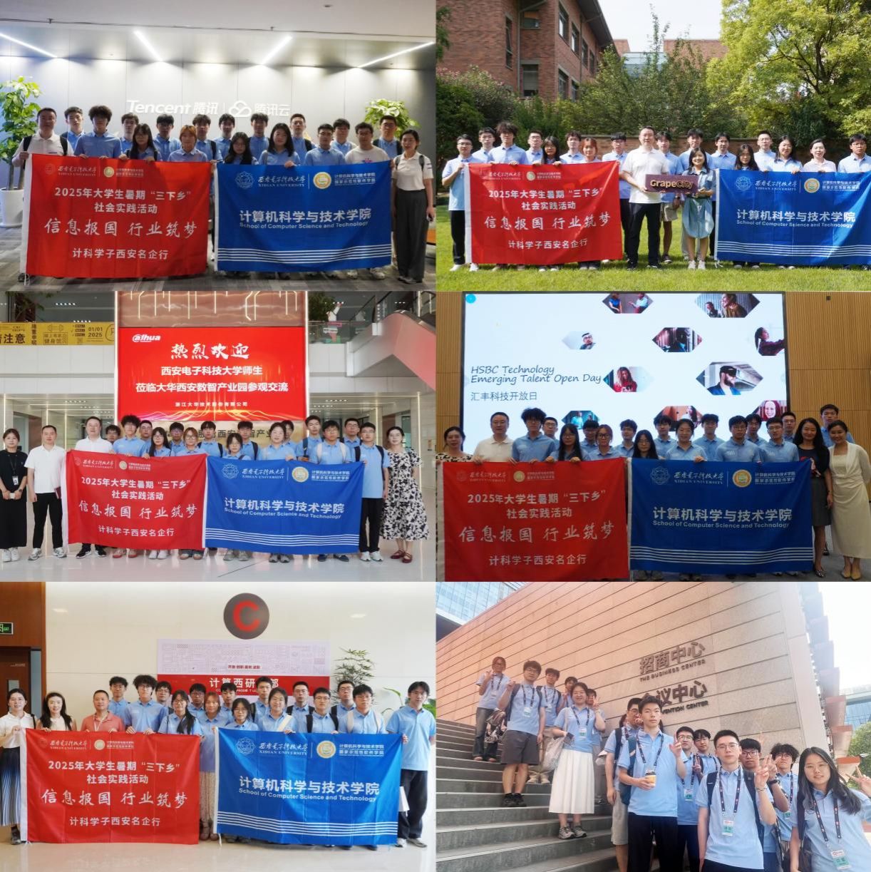 7 月 15 日至 17 日,在前期精心策划和组织下,本次“信息报国、行业筑梦”计科学子西安名企行暑期社会实践活动共招募16名实践队员,由辅导员袁权、章燕玲老师领队,前往腾讯云智研发公司、西安葡萄城信息技术有限公司、大华股份西安数智产业园、汇丰软件西安分公司、华为西安研究所等五家学院重点就业单位开展实践活动,了解探究行业前沿动态,调研人才培养的产业需求,明确信息强国战略下人才应具备的政治素养、知识架构、能力素质,探寻人才培养的创新方向和路径。