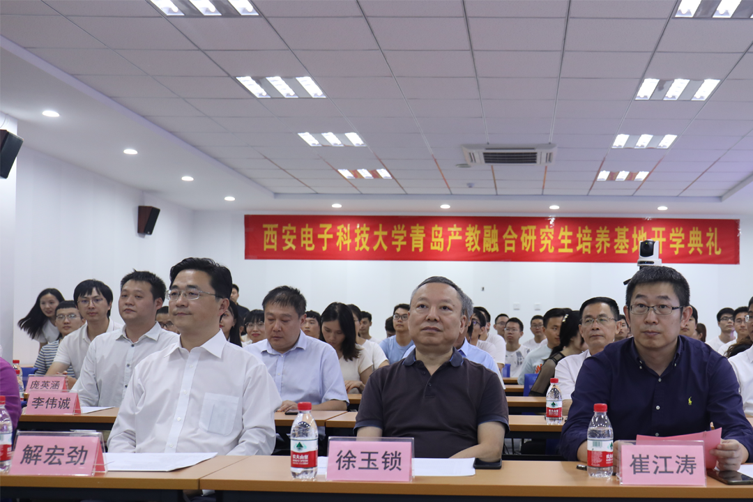 9月21日下午,西电青岛研究院产教融合研究生联合培养基地开学典礼在研究院一楼综合报告厅隆重举行。城阳区委副书记、区长解宏劲,城阳区副区长李守林,best365手机版官方网站执行院长崔江涛、党委书记李青山以及学院和研究院相关负责人,研究院全体研究生(研一学生线上参加)与辅导员、行政管理人员参加了开学典礼,典礼由计科院副院长、研究院院长沈玉龙主持。开学典礼开始前,全体人员合影留念。