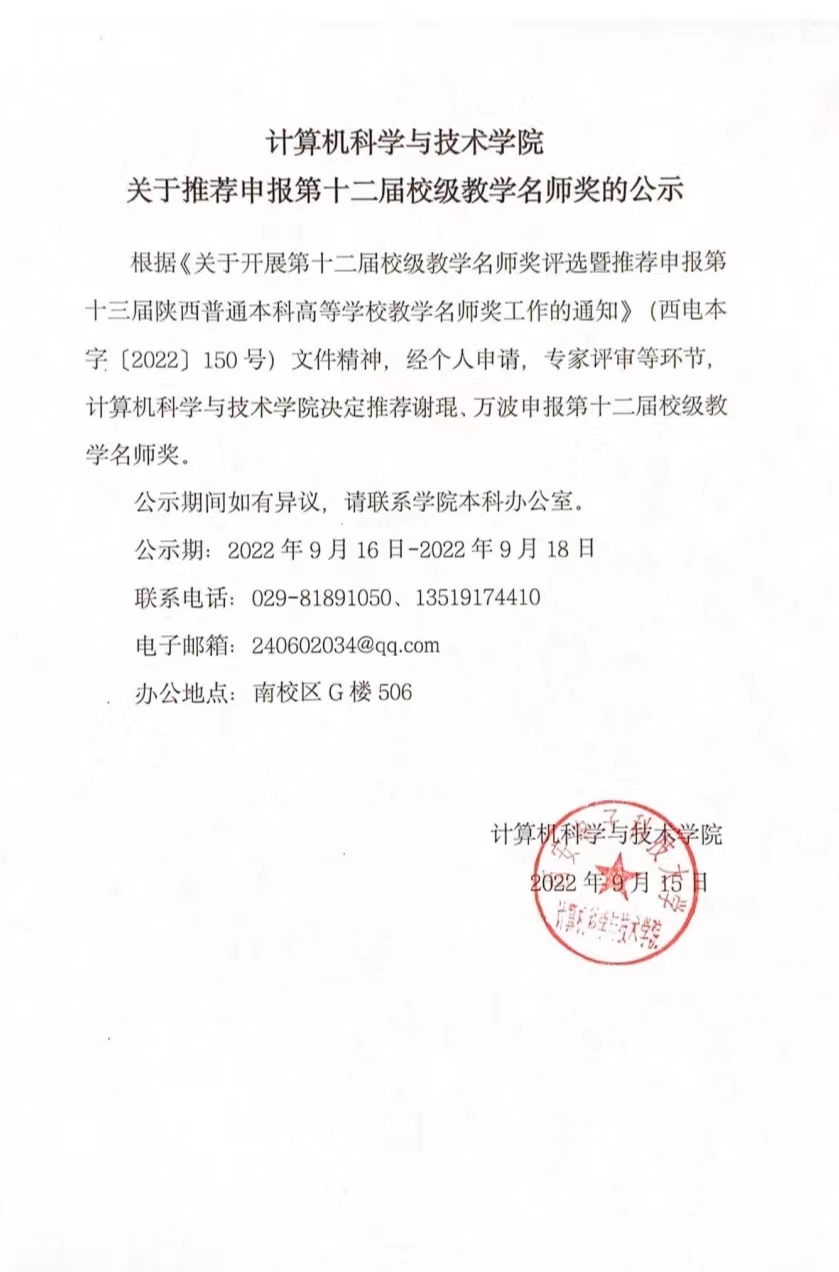 best365手机版官方网站关于推荐申报第十二届校级教学名师奖的公示