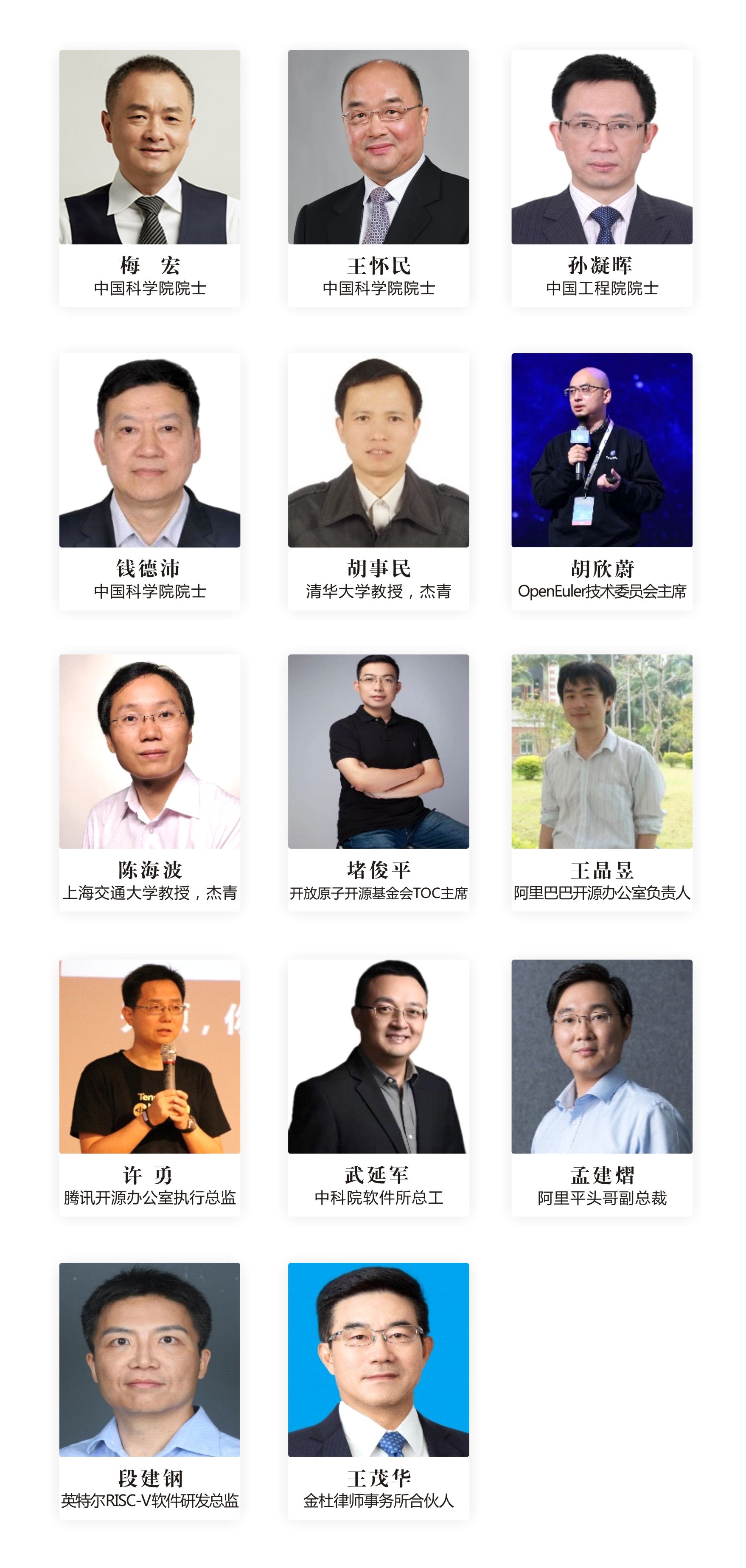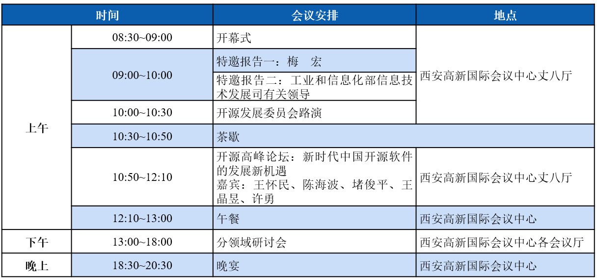 作为第一届CCF全国开源大会,本届大会将组织特邀报告、开源高峰论坛、开源发展委员会路演、社区论坛、技术论坛、教育论坛、开源创新大赛培训等20余个不同类型的活动。大会将邀请10余位开源及相关领域中国科学院院士、中国工程院院士与知名专家,为大会带来特邀报告并参加开源高峰论坛等活动。目前已邀请参会的两院院士与知名嘉宾包括中国科学院院士梅宏,中国科学院院士王怀民,中国工程院院士孙凝晖,中国科学院院士钱德沛,工信部信发司有关领导,国家杰出青年自然科学基金获得者、清华大学教授胡事民等。本届大会预计将吸引参会单位超过100家,作为中国开源领域的年度盛会,诚挚地邀请开源领域学术界、企业界、教育界的学者、从业者、师生等前来参会!