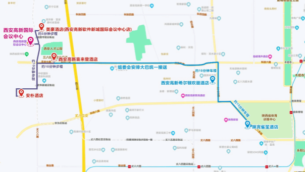 2)公共交通:机场大巴城西客运站线一到达城西客运站下车→城西客运站乘坐公交272路/186路一到达西三环天谷六路站下车一步行约787米,约12分钟到达西安高新国际会议中心,全程约1小时50分钟。
