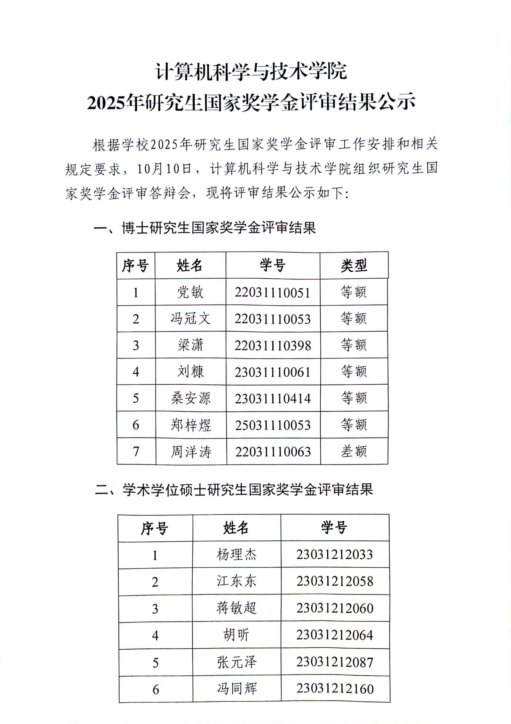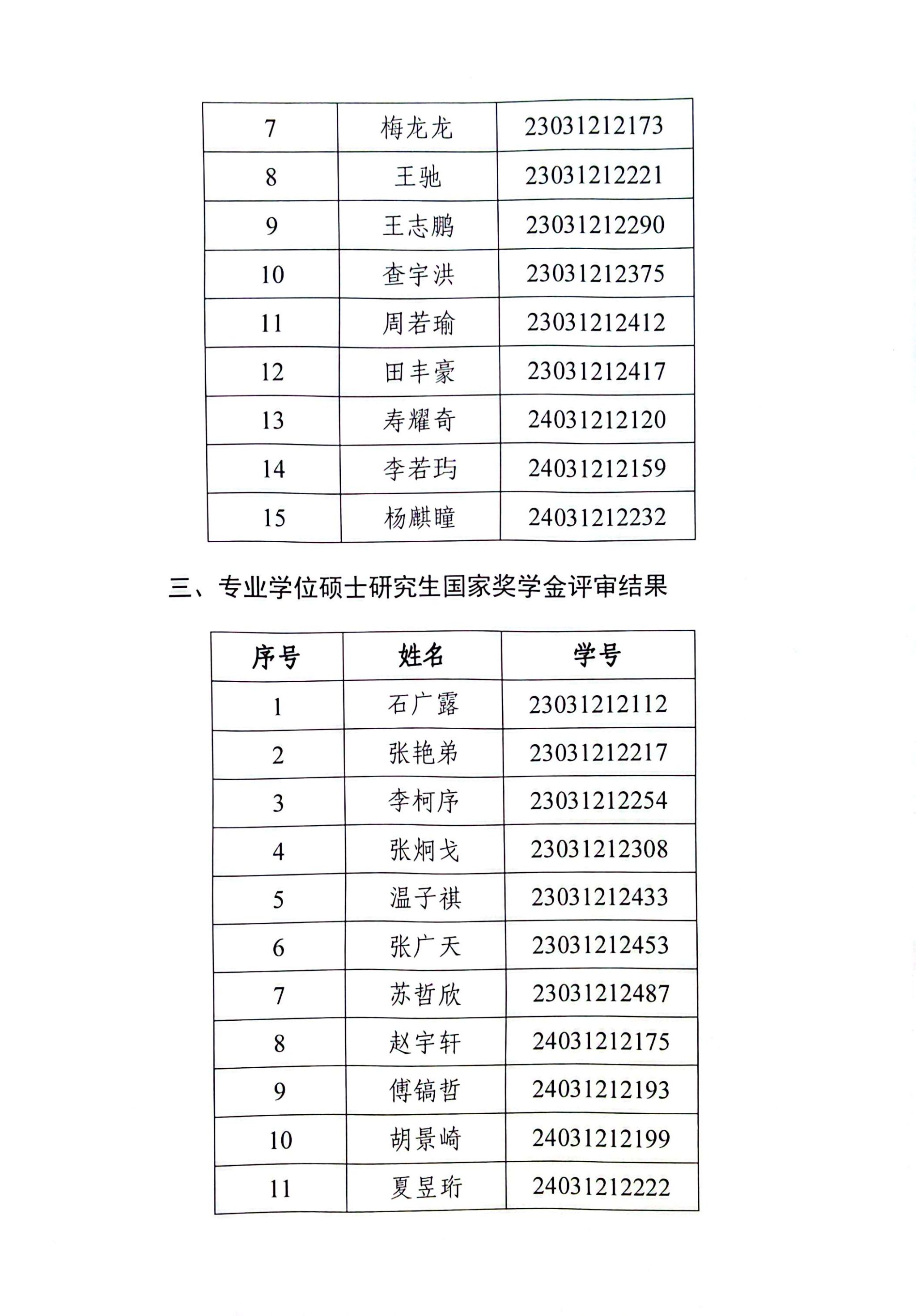 best365手机版官方网站2025年研究生国家奖学金评审结果公示