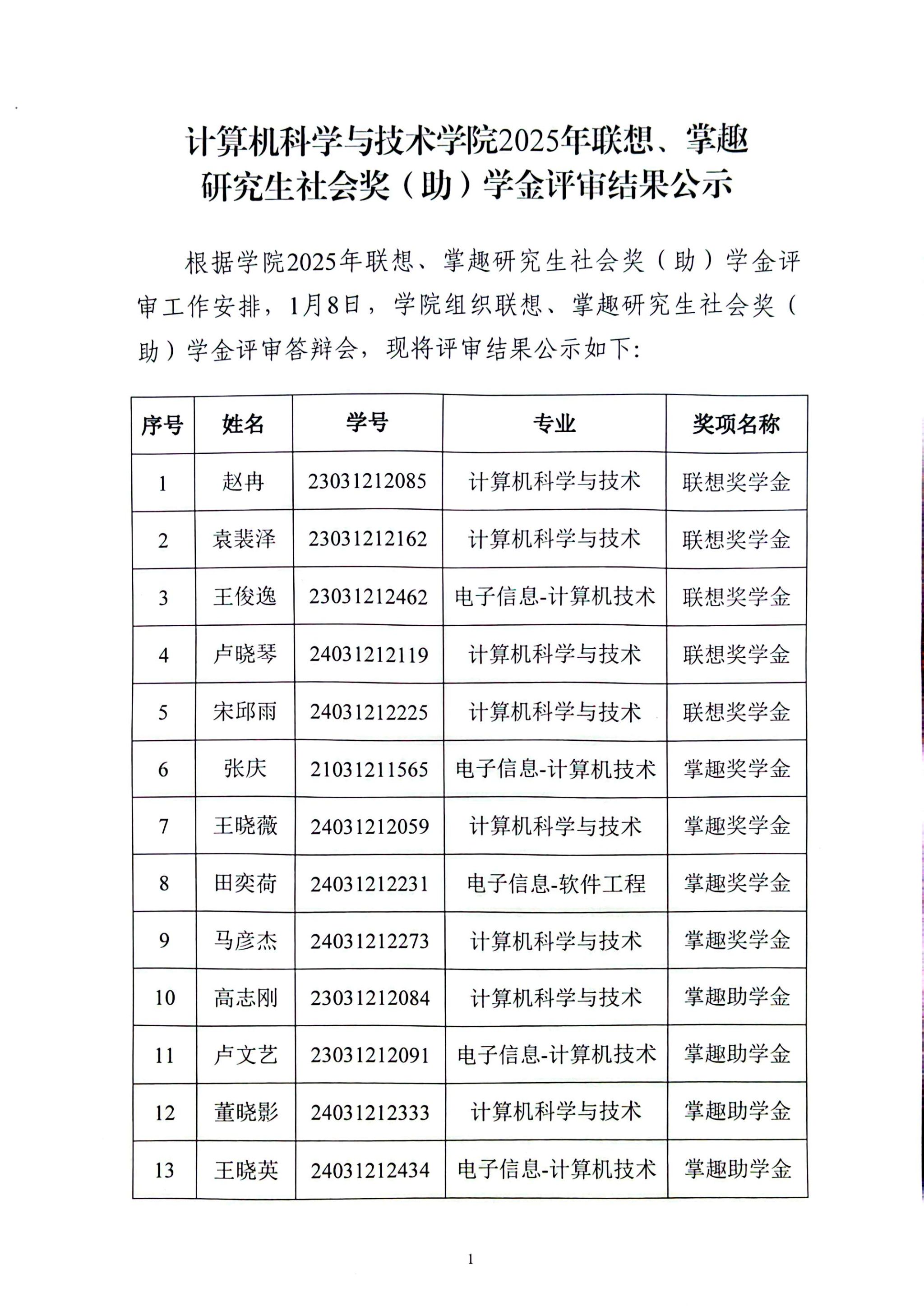 best365手机版官方网站2025年联想、掌趣研究生社会奖(助)学金评审结果公示