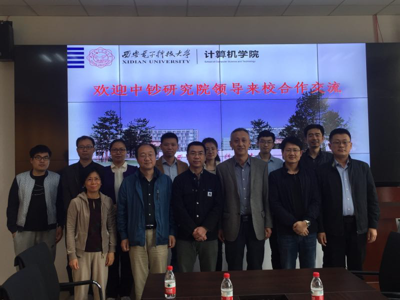 张一锋院长介绍了研究院的概况,重点介绍了研究院在区块链方面的业务情况,以及碰到的一些技术壁垒等,例如区块链底层架构中的相关核心算法的改进等。中钞区块链研究院陈亮经理、金邦人丰董事长萧疆等也就相关技术问题进行了交流。计算机学院苗启广教授、霍红卫教授,通信工程学院裴庆琪教授,软件学院刘惠副教授等10余人就团队在区块链技术方面的技术储备和研究进展情况做了介绍,就有关细节方面与区块链研究院的专家们进行了深入探讨。机电工程学院梁玮书记对张院长一行表示了欢迎,并希望研究院与计算机学院能够优势互补、强强联合,开展长期合作,促进共同发展。