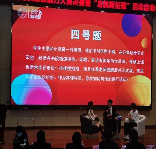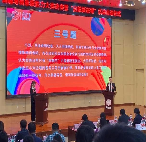 赛后王牌也发表了自己的参赛感言:“作为新进辅导员,非常感谢学校与学院提供这样的平台,让自己有机会正视自身不足,有途径与优秀同事交流学习。作为一名辅导员,想要走向职业化与专业化的道路,提高思想政治教育工作的质量,一定不能安于现状而需要不断学习、汲取养分。未来得路还很长,希望自己能够脚踏实地,用心用力用情地去做好这一份光荣的事业。”