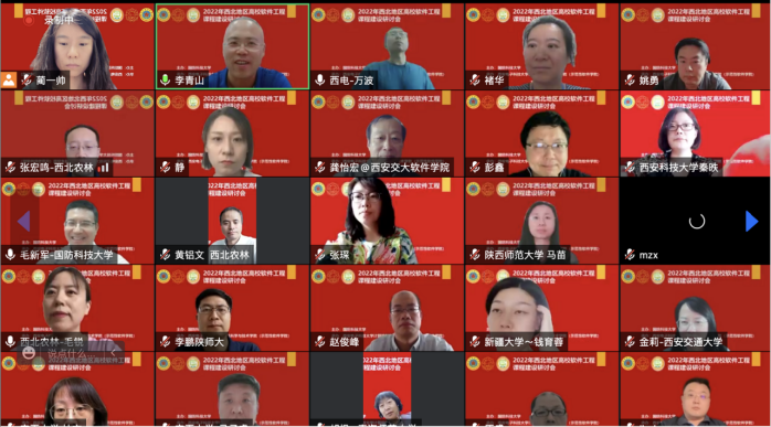 研讨会的交流研讨环节由李青山教授主持,西安交通大学软件学院副院长金莉、西北工业大学软件学院副院长马春燕、西北农林科技大学信息工程学院院长张宏鸣、陕西师范大学计算机科学学院副院长马苗、西安科技大学best365手机版官方网站副院长马天、兰州大学信息科学与工程学院副院长马志新、新疆大学软件学院软件工程课程负责人张琳琳、青海师范大学软件工程系主任胡枫、宁夏大学信息工程学院副院长杜方、内蒙古大学计算机学院(软件学院)院长周建涛先后就软件工程教学中的痛点问题、教学体系设计、教学案例设计、项目实践中的工程能力培养、课程思政推进等问题与参与人员展开了深入的交流讨论。