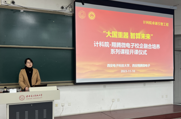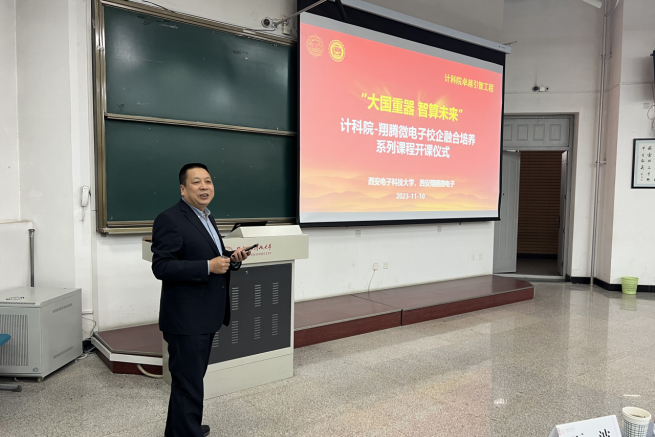 田泽总经理对翔腾微电子科研工作及课程内容进行了介绍,并表示公司十分重视与西电计科院合作开设面向卓越工程师培养的校企融合课程,一方面希望通过对于机载芯片与计算架构的讲解、实验与实训,实现高校与企业之间的产教研深度融合;另一方面,希望更多同学掌握面向自主芯片软硬件生态的开发技术与实践方法,助力卓越创新人才的培养。
