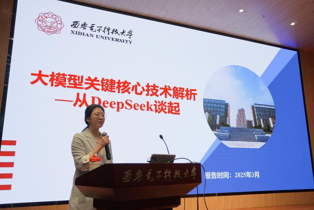 随后,王倩茹老师对大模型技术展开分享,她通过深入浅出的案例激发同学们对大模型研究的兴趣,同时就混合专家模型、模型蒸馏、注意力机制等核心技术进行解读,帮助大家理解大模型相关知识。