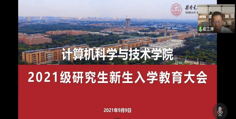 执行院长崔江涛首先代表学院欢迎2021级研究生新生加入best365手机版官方网站大家庭。随后,他从西电的历史沿革和学院的务实学风出发讲述了我院在人才培养、学术领域、国家发展方面所作的突出贡献。他结合学院人才培养和学科建设,分享了对新发展理念“创新”、“绿色”、“共享”的认识和体会,勉励新生切实增强个人科研创新能力、可持续发展能力、团结协作能力,坚定理想信念,树立道德情操,将个人职业发展与新时代历史使命相融合,做一名“胸怀国之大者”,为实现中华民族伟大复兴中国梦贡献力量。