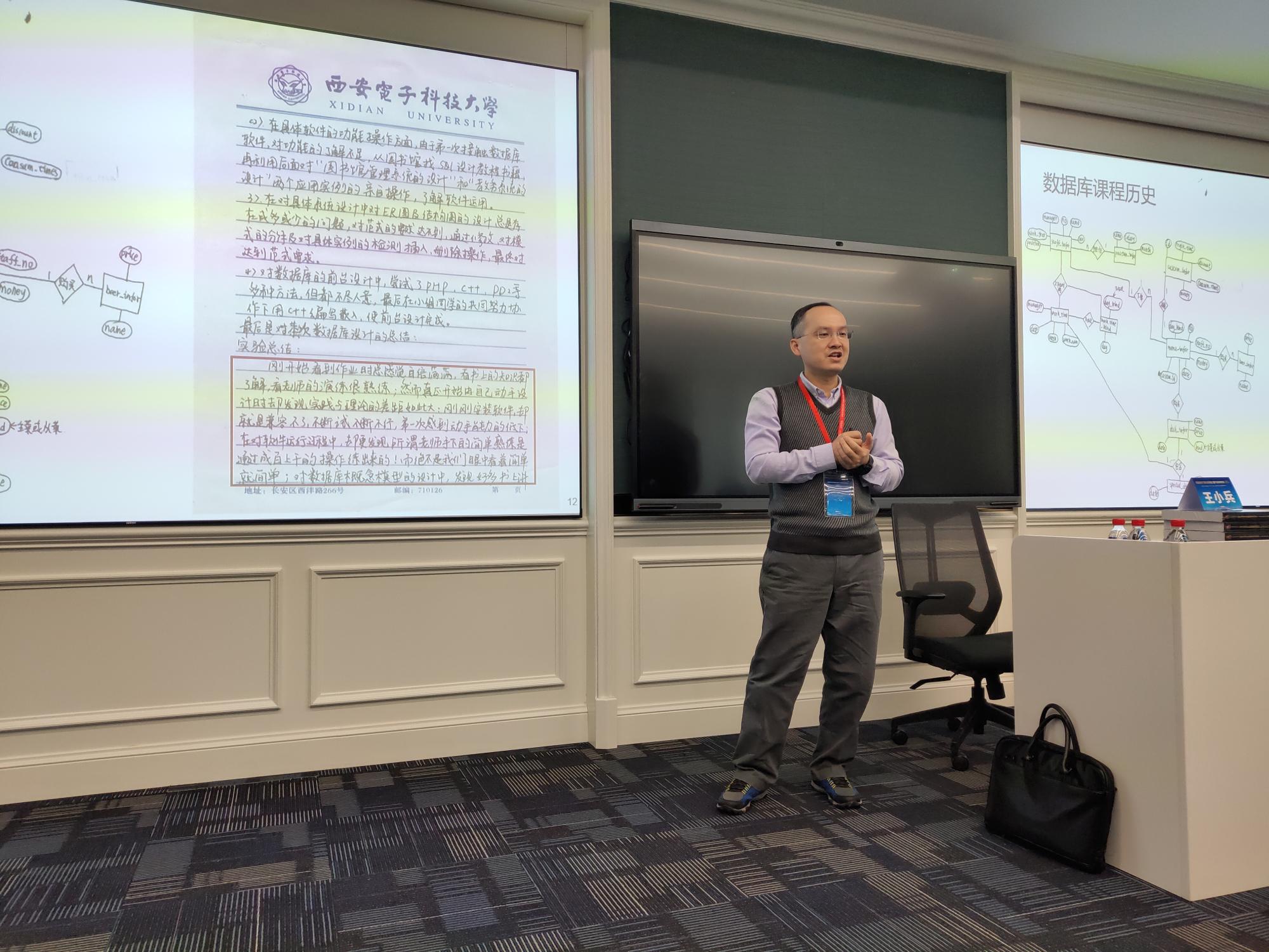 2022年,“国产数据库课程群”获批教育部首批虚拟教研室建设试点,王小兵是虚拟教研室骨干教师,担任计算机科学拔尖班团队负责人,主持计算机科学与技术专业“数据库系统”课程建设。近年来积极参与智能基座基地建设,主持华为-教育部产学合作协同育人项目1项(基于GaussDB 100的数据库实验课程改革);鲲鹏众智计划项目3项(openGauss支持在线reindex开发、openGauss-实现或兼容MySQL日期处理函数开发、面向openGauss的数据库系统实践平台)。王小兵已经将华为开源数据库openGauss融入课程教学,在西电智课平台的课程网站上公开了课件、视频、实践平台。研究成果作为课程思政优秀案例已经融入数据库系统课程,获得华为、教师和学生的一致好评。