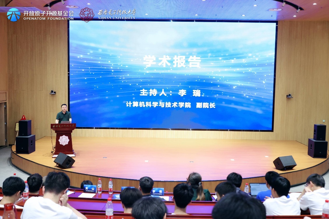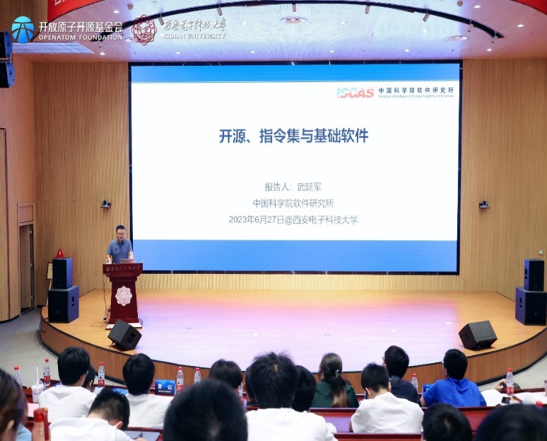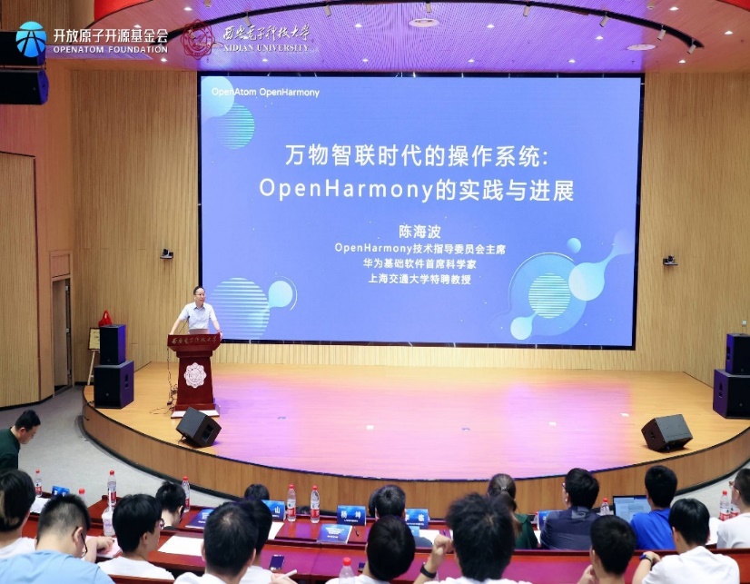 仪式后,陈海波和武延军两位老师代表OpenHarmony TSC专家向best365手机版官方网站的师生们做了OpenHarmony相关主题的技术报告。第二阶段会议由best365手机版官方网站副院长李瑞主持。