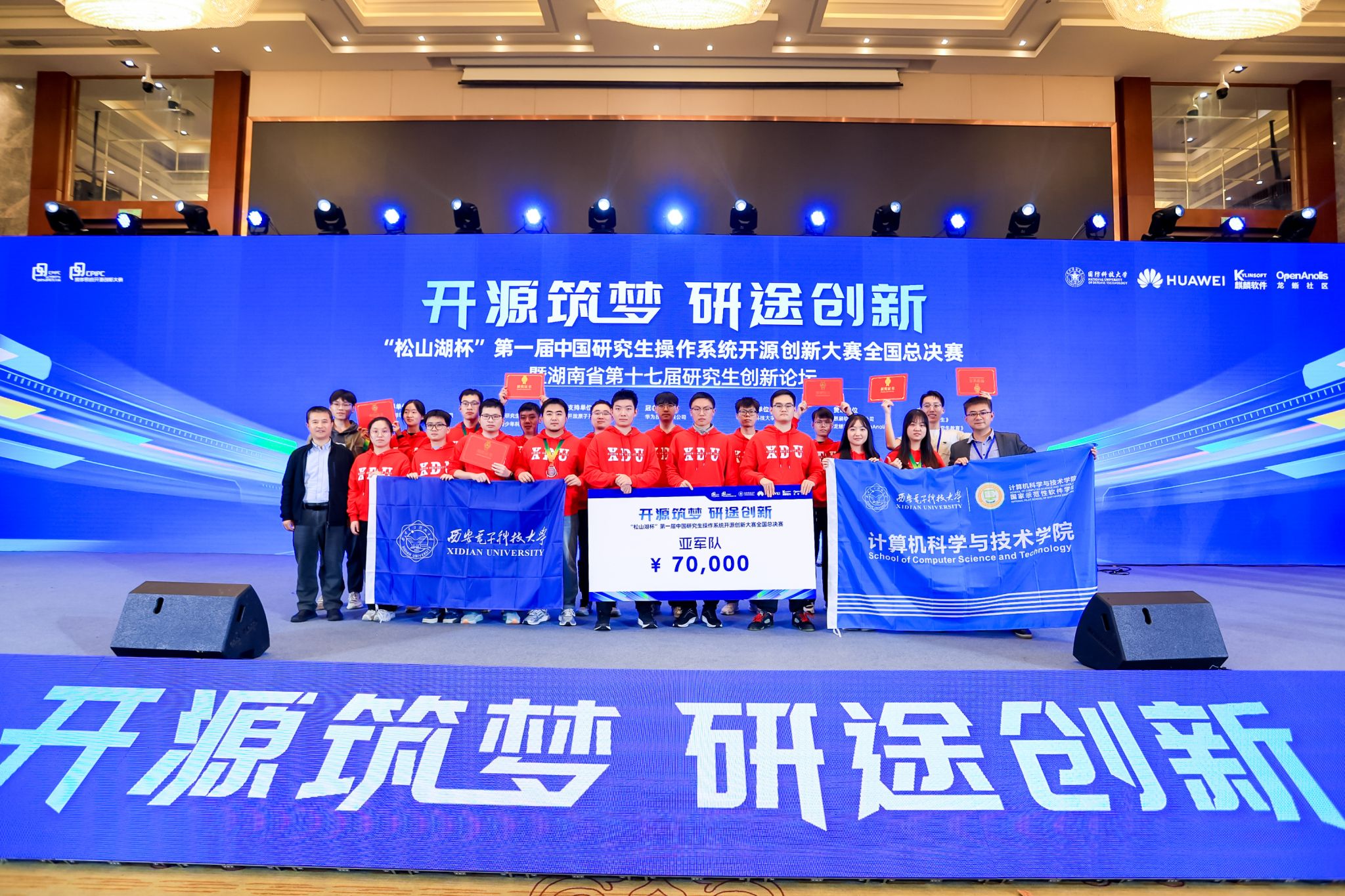 (通讯员 同榛 张庆)10月22日至24日,由教育部学位管理与研究生司指导,中国学位与研究生教育学会、中国科协青少年科技中心主办,国防科技大学承办的“松山湖杯”第一届中国研究生操作系统开源创新大赛全国总决赛在湖南长沙隆重举行。本次大赛以“开源筑梦,研途创新”为主题, 旨在服务国家高水平科技自立自强的战略需求,推动基础软件关键技术创新,培养拔尖创新型人才。在本届比赛中,我校获一等奖两项(含全国亚军一项)、二等奖一项、三等奖三项,一等奖数量并列全国第一!学校获“优秀组织单位”奖项。卢笛、杜军朝、张志为获评优秀指导教师。