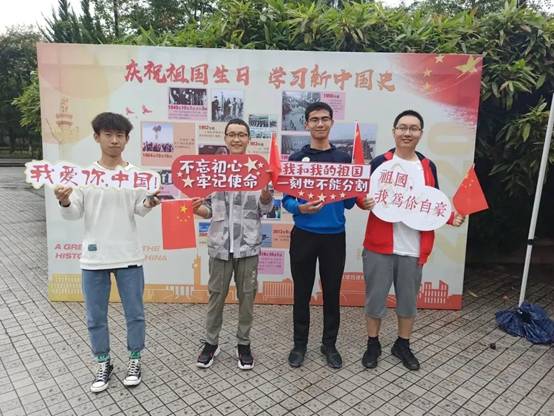 同学们举着我爱你中国”“祖国,我为你自豪”“我和我的祖国一刻也不能分割”的字牌,在新中国史大事记主题展板前纷纷合影留念,表达青年学子热爱祖国的赤子之心和对祖国母亲的美好祝福。