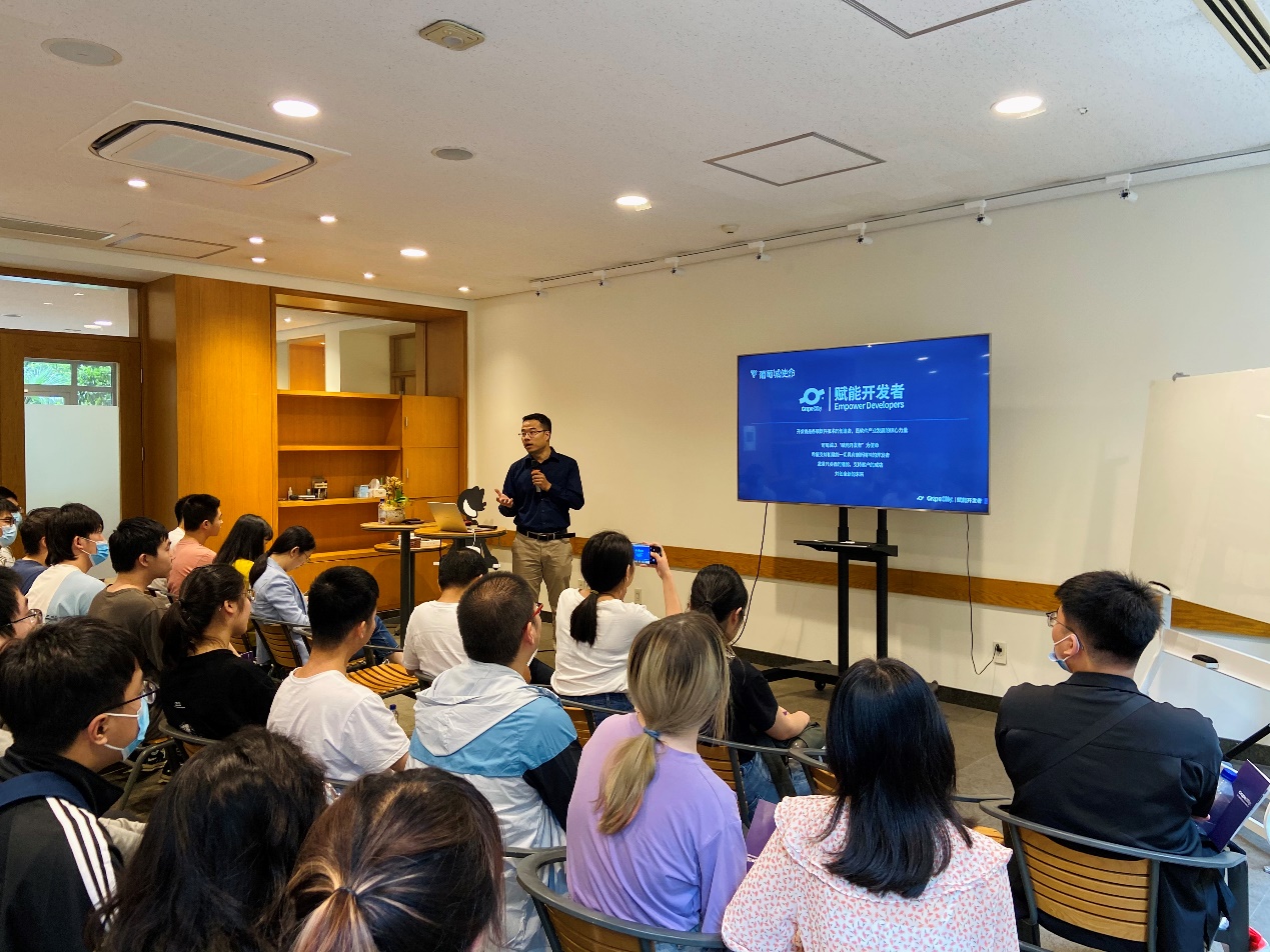 随后,同学们和在公司任职的西电师兄、师姐们就公司业务、个人发展和求职机遇等个人关心的问题进行了充分交流。在讲解和互动结束之后,工作人员带领同学们参观了葡萄城园区,近距离感受工作气氛和企业文化。
