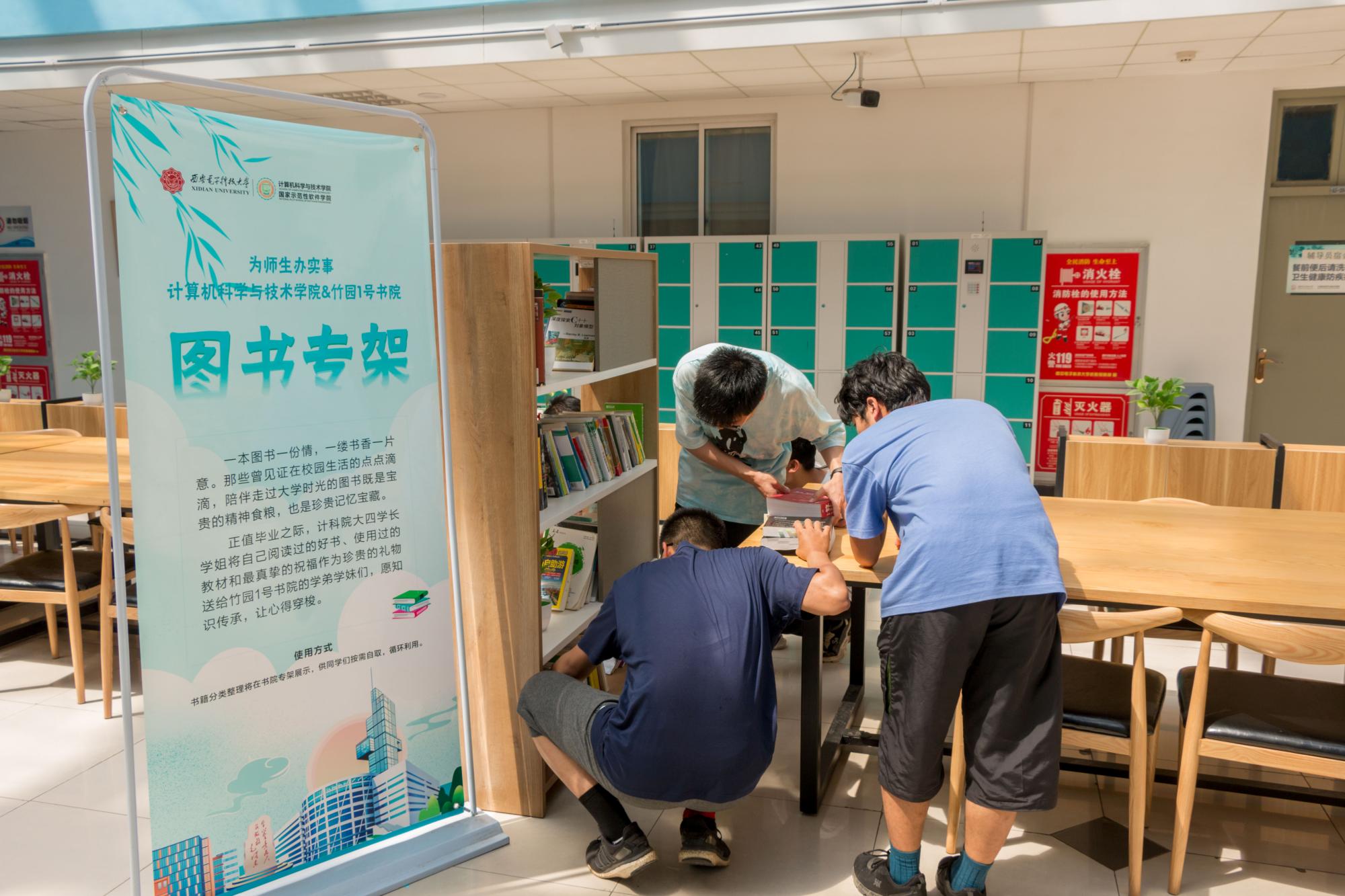 best365手机版官方网站联动竹园1号书院将所赠书籍分类整理在书院大厅打造“图书专架”展示,供同学们按需自取,循环利用。活动结束后,大一同学们纷纷驻步围看图书展架,挑选自己所需要的书籍,将学长学姐的积累与祝福传承。