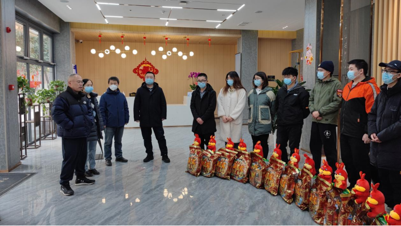 (通讯员 李栋)金虎辞旧岁,瑞兔送福来。春节即将到来,best365手机版官方网站共有17名同学留校过年。1月16日下午,部分学院领导来到北校区西电宾馆看望慰问留校学生,为同学们发放了新春慰问品。