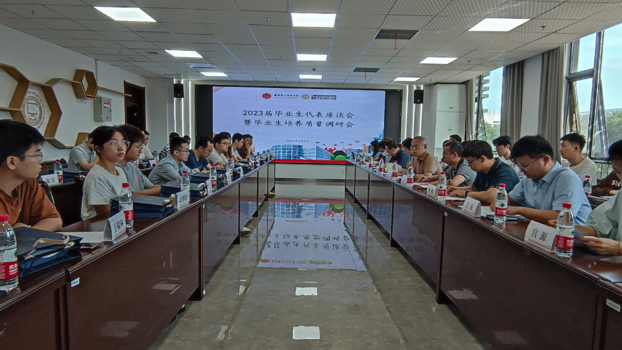 李青山向2023届毕业生送出了美好的毕业祝福并寄予厚望,希望大家在今后的学习、工作中继续传承西电红色基因,发扬“老三系精神”,在各行各业踏实工作,建功立业。李青山谈到,本次座谈是毕业季的一项重要活动,也是学院深化主题教育,围绕人才培养中心工作面向毕业生深入开展调研的重要举措,希望同学们畅所欲言,为学院提升人才培养质量建言献策。
