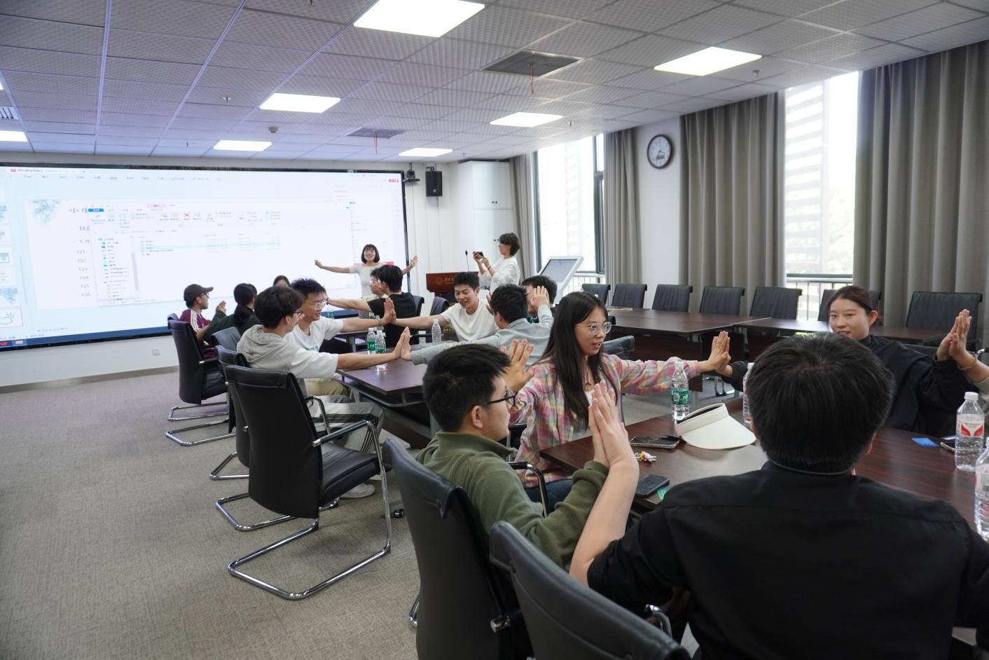 “自我成长关系融洽”主题心理团体辅导面向研究生班团骨干代表开展,齐静老师通过一系列充满创意的互动环节为现场注入活力。