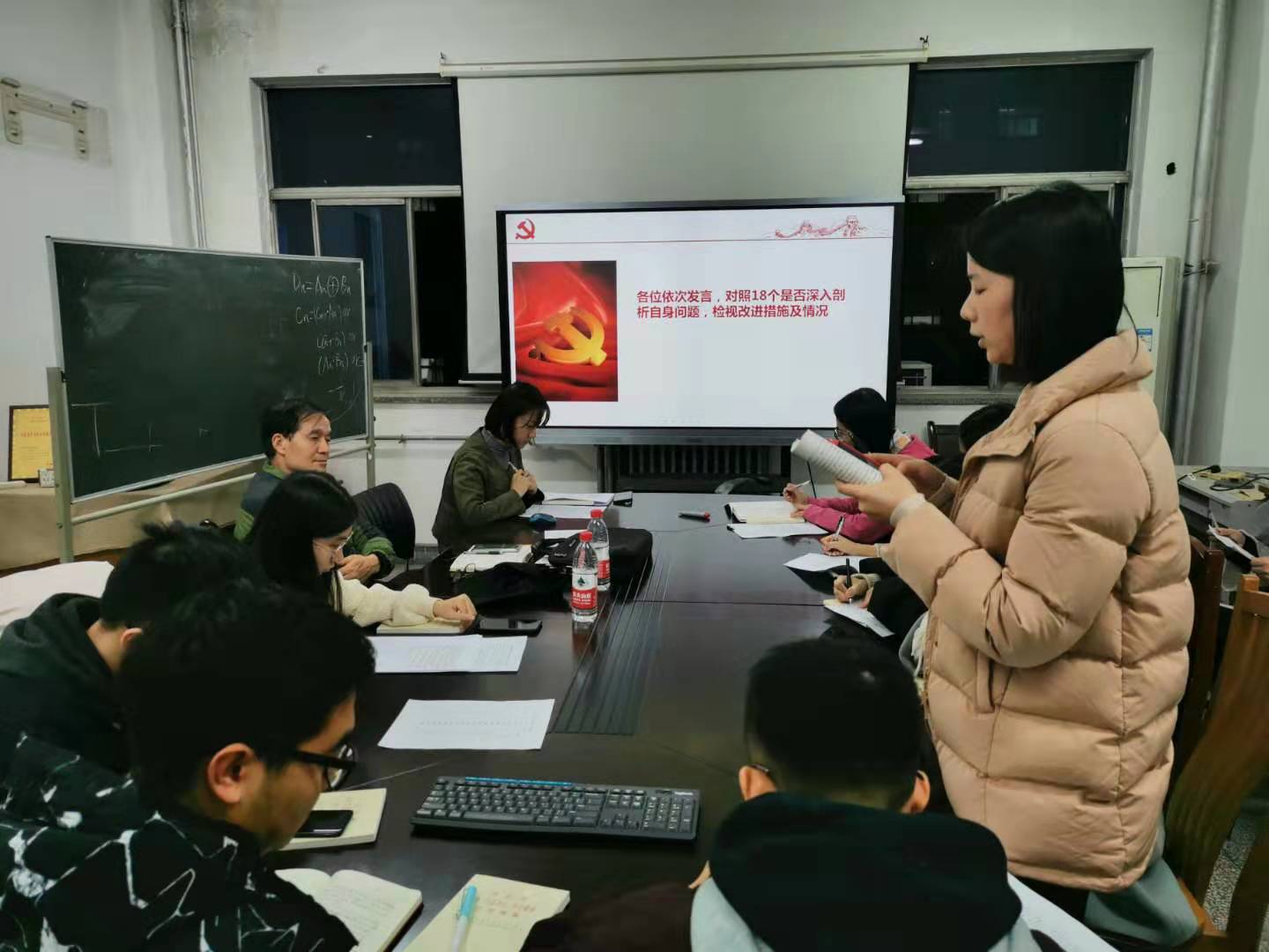 接下来,支部书记高蕾代表支部向全体党员述职,剖析了支部建设中存在主要的问题,包括支部管理制度还不规范,志愿服务活动较少,活动宣传力度不够等。问题整改措施将在之后的工作中一一落实到位。之后支部委员带头盘点参加主题教育的收获提高,查找违背初心和使命的差距不足。支部成员普遍存在政治学习不足,经常浮于表面而没有深刻体会与反思,此外作为高年级学生党员没有很好的起到党员先锋模范带头作用,服务意识差,对待科研和工作存在懈怠,放低对自我要求的现象。针对以上剖析的问题,党员们纷纷表示将在接下来的时间里不断加强政治理论和业务学习,调整好个人的状态,提高主观能动性,以更大的热情投入到科研学习和服务周围师生群众中去。