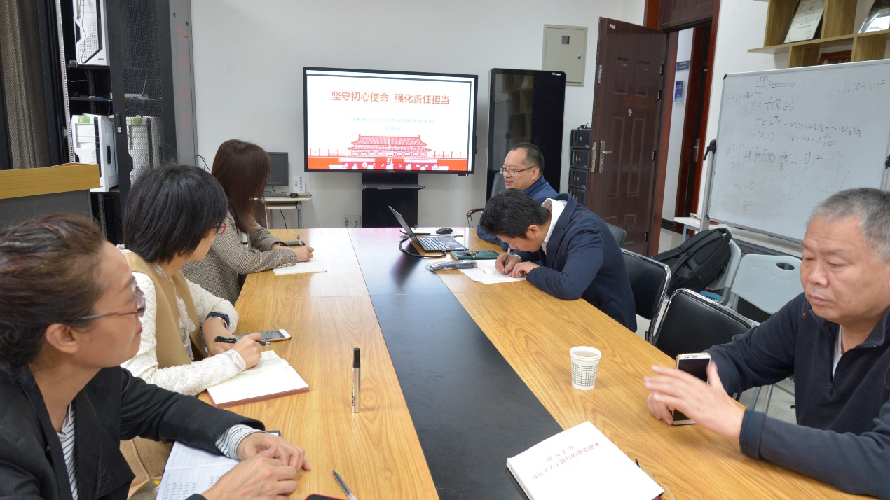 赵韩强谈到,习近平总书记在“不忘初心、牢记使命”主题教育工作会议上强调,“为中国人民谋幸福,为中华民族谋复兴,是中国共产党人的初心和使命,是激励一代代中国共产党人前赴后继、英勇奋斗的根本动力”,这就要求我们坚定理想信念,强化责任心,勇于担当。他首先阐述了责任、担当的内涵,接着从“共产党员应有怎样的责任担当、如何做到心怀责任,勇于担当、如何在实践中落实责任担当”三个方面解释了责任担当“是什么、为什么、怎么做”的问题。他结合实际工作,指出了目前学院机关工作中存在的问题及有待改进的地方,并提出了下一步整改落实的具体举措。