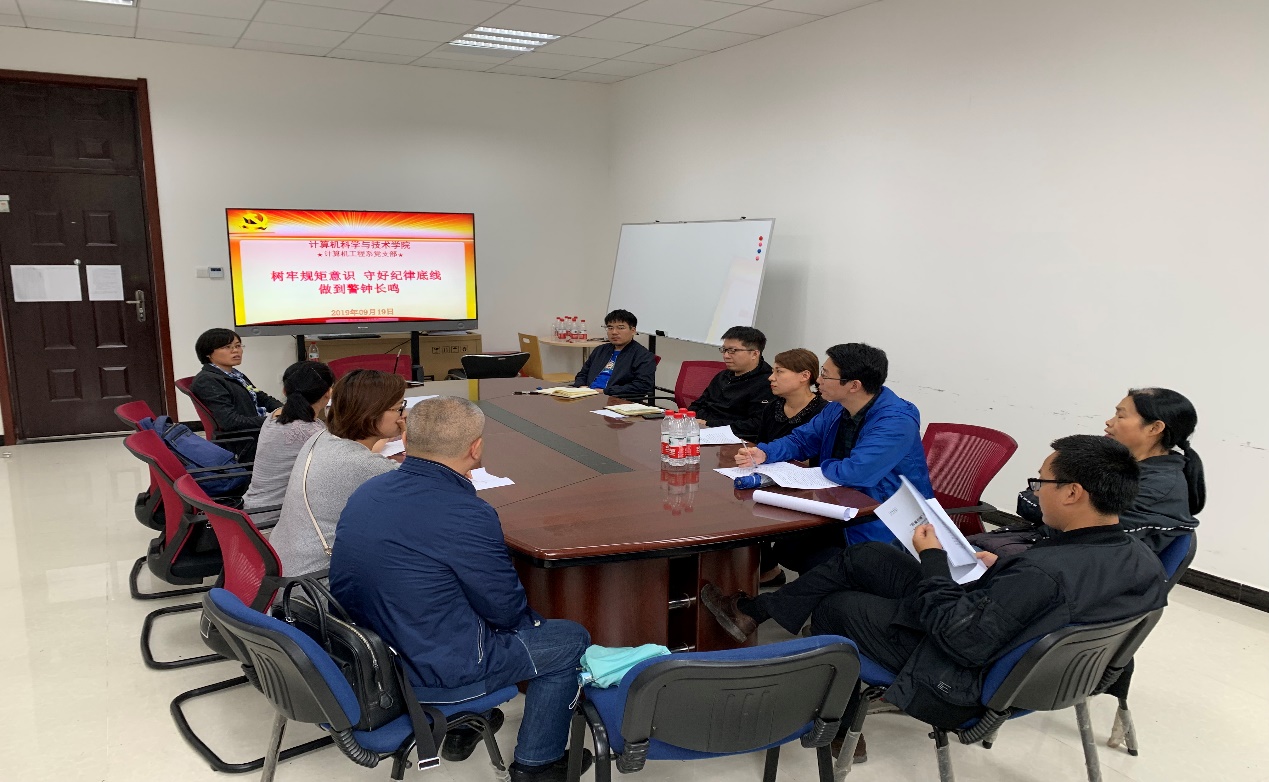 (通讯员 鱼亮 杨鹏飞) 为深入贯彻落实中央全面从严治党要求,进一步深化教育部党组巡视反馈问题整改,教育引导广大党员树牢规矩意识,守好纪律底线,营造风清气正的校园政治生态,深刻反思我校“8∙19”案件教训,按照学校党委《关于召开教职工党支部专题组织生活会的通知》要求和学院党委统一部署,best365手机版官方网站计算机工程系党支部于2019年9月19日召开了专题组织生活会,计算机工程系党支部书记鱼亮主持了本次会议。
