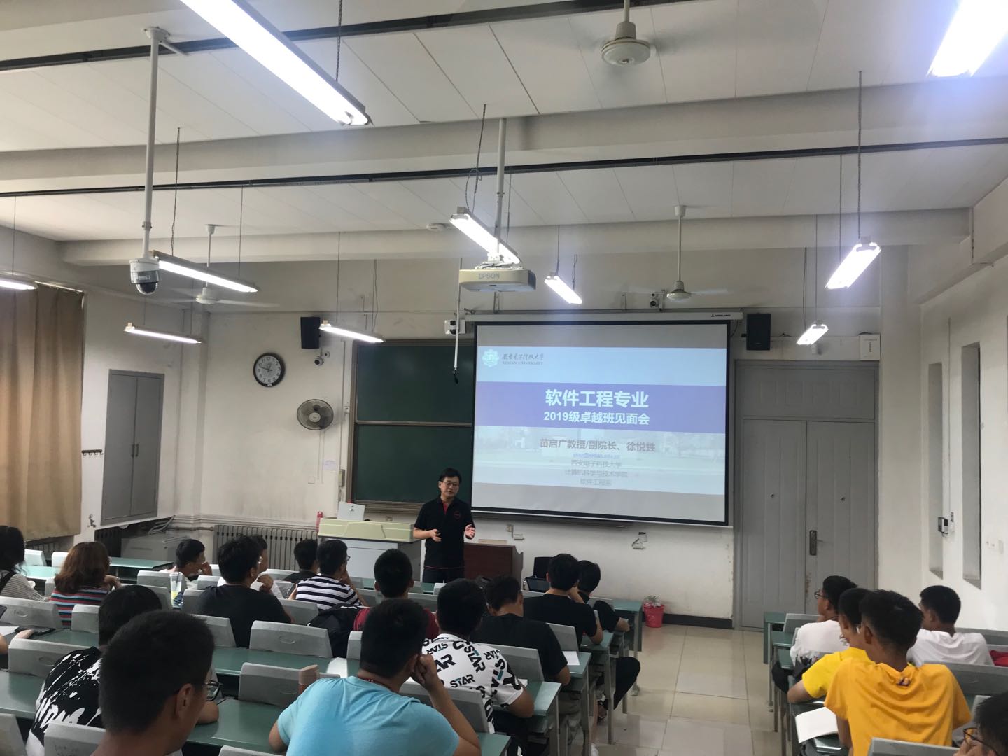 (通讯员 杨鹏飞 徐悦甡)为全面落实立德树人根本任务和“六卓越一拔尖”计划2.0精神,真正做到以学生为中心,best365手机版官方网站于9月8日和12日分别召开软件工程专业和计算机科学与技术专业卓越班见面会,为2019级卓越班新生详细解读“卓越2.0”培养方案和实施计划。见面会分别由软件工程专业卓越班负责老师徐悦甡及计算机科学与技术专业卓越班负责老师杨鹏飞主持,软件工程卓越班四十名同学和计算机科学与技术卓越班四十名同学分别参加,学院副院长苗启广出席了会议。