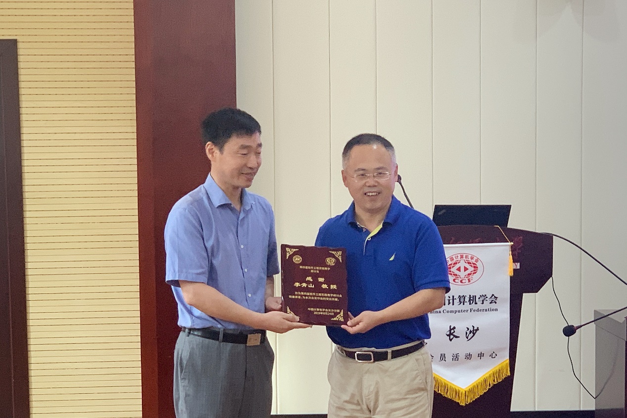 (通讯员 宋胜利)第四届软件工程实践教学研讨会于2019年8月24日在湖南师范大学召开,会议以“软件工程实践教学如何培养学生解决复杂工程问题的能力”为主题,邀请了全国软件工程学科优势高校和软件行业知名企业的专家学者、技术负责人和工程开发人员共同交流软件工程人才培养的要求和问题,分享实践教学改革的经验和成果。我校软件工程学科负责人李青山教授受邀参加研讨会并作了题为“需求导向的软件工程专业实践能力培养体系建设与实践”的主题报告,软件工程系主任宋胜利教授和软件工程专业学位授权点负责人李瑞副教授参加了此次研讨会,申请了我校作为2020年第五届软件工程实践教学研讨会的承办单位。