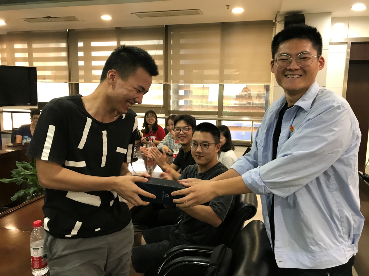 陕汽职工杨江涛(西电2012级本科生校友)赠送纪念品