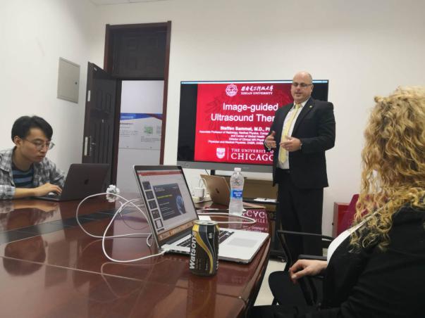 7月8日上午, Dr. Steffen Sammet教授以“Image-guided Ultrasound Therapy”为题,他的夫人Dr. Christina Sammet(美国西北大学放射科的诊断医学物理师)以“Balancing Risks in Pediatric Imaging”为题,分别为best365手机版官方网站研究生做了两场生动有趣的报告,对于拓展研究生的临床科研视野,开展国际合作具有非常重要的意义。