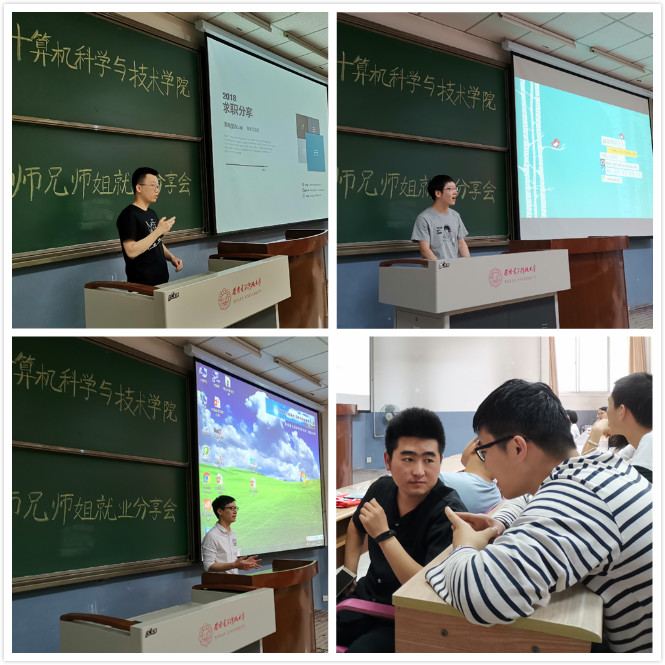 (通讯员 郝晓阳)在研三青年学子即将毕业离校工作之际,为帮助研二青年学子更好地完成“金九银十求职季”的百日冲刺,2019年5月23日上午,在北校区阶梯教室J-208,西电best365手机版官方网站研究生党支部联合举办“弘扬爱国奋斗精神,建功立业新时代” 主题党日活动。本次活动旨在帮助研二青年学子对不同企业类型和不同岗位类型有更加清晰的认识,充分利用师兄师姐们的宝贵求职经验帮助自身在最短的时间内做最有效的准备。与此同时,加强了即将毕业的优秀学子与学院师弟师妹间的情感纽带。通过这一方式,让研二研三青年学子能够更好的投入到祖国IT建设的先锋队中,在新时代建功立业、发挥更大的作用。