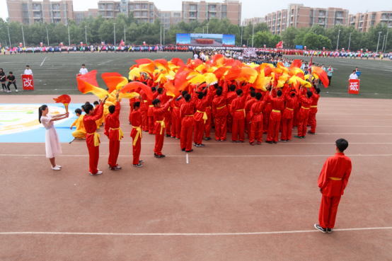 学生方阵由116名同学组成,前后各8名同学穿黄色服装列成两排,中间100名穿红色服装的同学构成10x10的队列。方阵表演由数字倒计时开始,计科学子通过重新演绎北京奥运会经典场景,向奥林匹克体育精神致敬;同学们通过快速准确变化手中的彩色扇子,构成了西电best365手机版官方网站首字母XDCST,整齐划一的口号响彻运动场:青春无畏,逐梦扬威,团结拼搏,争创佳绩!随后,方阵前后16位同学展开横幅构成一个巨大的计科院院徽图案,此时,中间同学们迅速跑动紧紧围成一团,一名女同学手持火炬走向红色方阵点燃圆形队列,瞬时队列化为熊熊燃烧的火焰,象征着西电计科学子传承红色基因、勇于拼搏奋进的精神。方阵表演创意十足、寓意丰富,赢得了在场观众的阵阵喝彩。