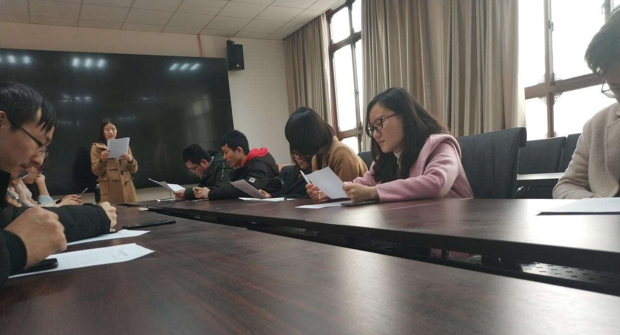 会议第二阶段,支部党员开展了党员民主评议和民主测评。首先进行党员个人自评和党内互评,分别从思想精神、科研学习、日常生活等方面,指出问题和不足。支部委员吴瑾、原富强、杨军、陈娟带头开展自我评价与批评,全体党员依次进行个人自评与党员互评。在此阶段中,每位党员都能针对自己日常学习、生活中的实际表现进行总结,深刻剖析,指出问题和不足,并提出整改措施与努力方向,望日后能有更大的提升。