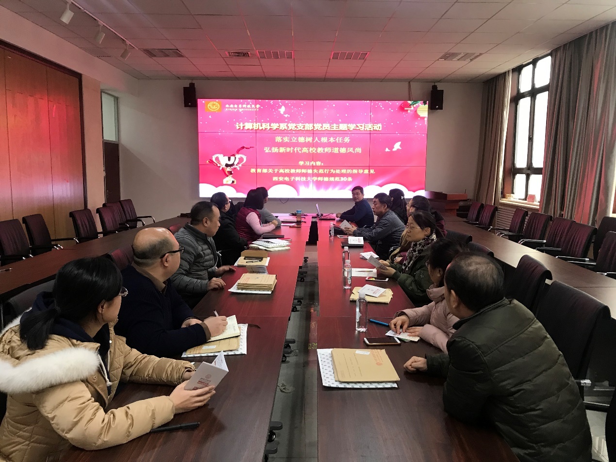 (通讯员 王晓丽,同榛)2018年12月25日下午,best365手机版官方网站计算机科学系党支部在北校区主楼二区319会议室召开以“落实立德树人根本任务、弘扬新时代高校教师道德风尚”为主题的学习活动,深入学习了《新时代高校教师职业行为十项准则》、《教育部关于高校教师师德失范行为处理的指导意见》和《best365手机版官方网站师德规范30条》。计算机科学系全体党员参加,会议由计算机科学系党委书记戚玉涛同志主持。