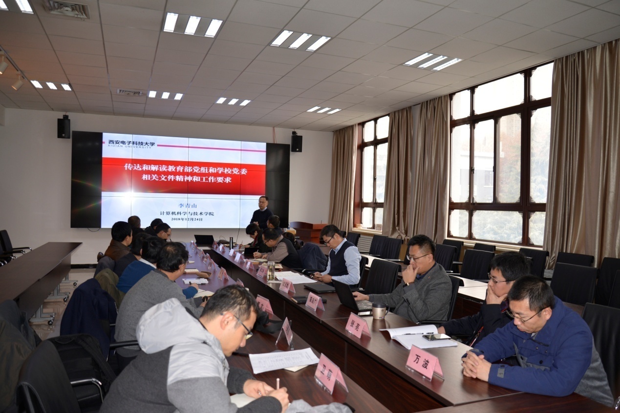 学院副院长田聪就教育部学位管理与研究生教育司关于研究生教育相关精神和要求进行了传达,重点解读了深化研究生教育系统改革的8个重点方向。副院长苗启广就本科教育工作会议精神有关精神进行了传达,特别是从课程改革角度对“什么是金课、建设五大金课”等进行了解读,结合学院本科课程实际设置情况提出“加强重视、提前部署、挖掘特色”等工作思路。副院长赵韩强就《best365手机版官方网站2018-2020年岗位聘任工作实施细则》向与会成员做全面传达和解读,明晰了“师德为先、业绩为重”的岗位聘任工作理念,更加明确了岗位聘任工作的重点。副院长沈玉龙传达了《关于开展“四唯”专项清理行动的通知》精神,重点解读了“四唯”现象的清理方向,明确了行动重点。