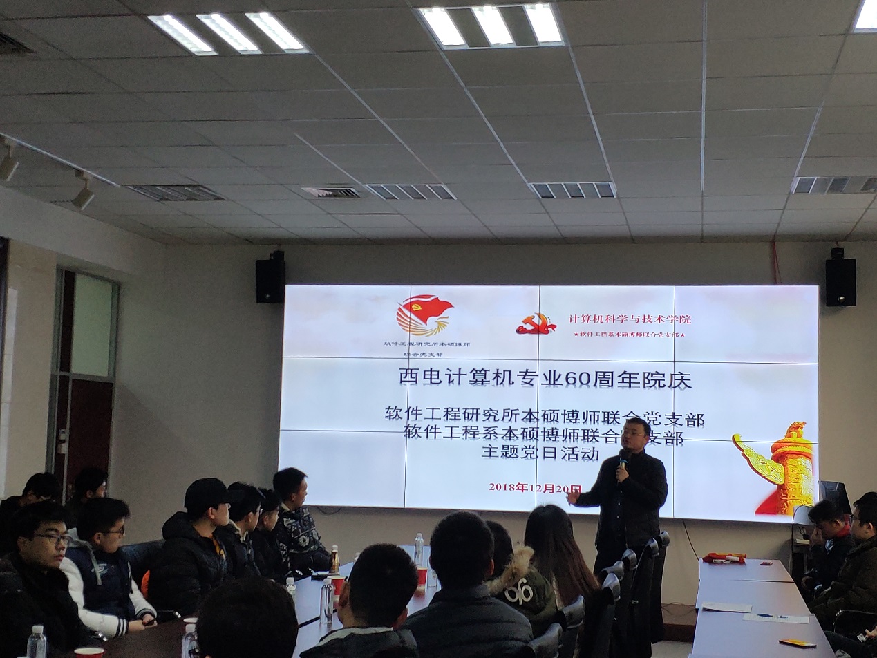 (通讯员:赵海洋 田文生)12月20日,值此西电计算机建专业60周年之际,软件工程研究所本硕博师联合党支部和软件工程系本硕博师联合党支部,联合开展“西电计算机专业60周年院庆”主题党日活动。本次活动主要回顾了best365手机版官方网站建专业60周年以及软件工程发展50年历程,解读了国家软件发展战略、国家软件人才需求情况和西电软件工程专业的发展状况;王璐博士与师弟师妹们就大家关心的奖助体系和培养体系进行了介绍。会议也积极讨论了关于支部建设和党组织活动开展的重要事项。会议由软件工程系本硕博师联合党支部书记李瑞老师主持。