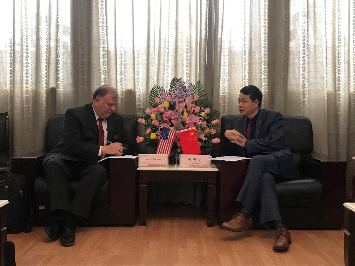 Kevin Truman首先对西电的热情接待表示了感谢,并对西电在过去两年中取得的成就表示了祝贺。Kevin Truman表示密苏里大学堪萨斯分校近几年也在不断扩大学校招生规模、增加科研项目和支持创新创业发展,他提到此次一同来访西电的还有计算机和工程学院的两位教授,这两位教授的研究成果已被阿里巴巴蚂蚁金服收购,且两位教授也分别在蚂蚁金服担任首席技术执行官和研发主任,此类公司对专业技术能力优秀且熟悉中美语言文化的人才需求很大,他希望以此为契机和西电在全球人才培养方面开展合作。